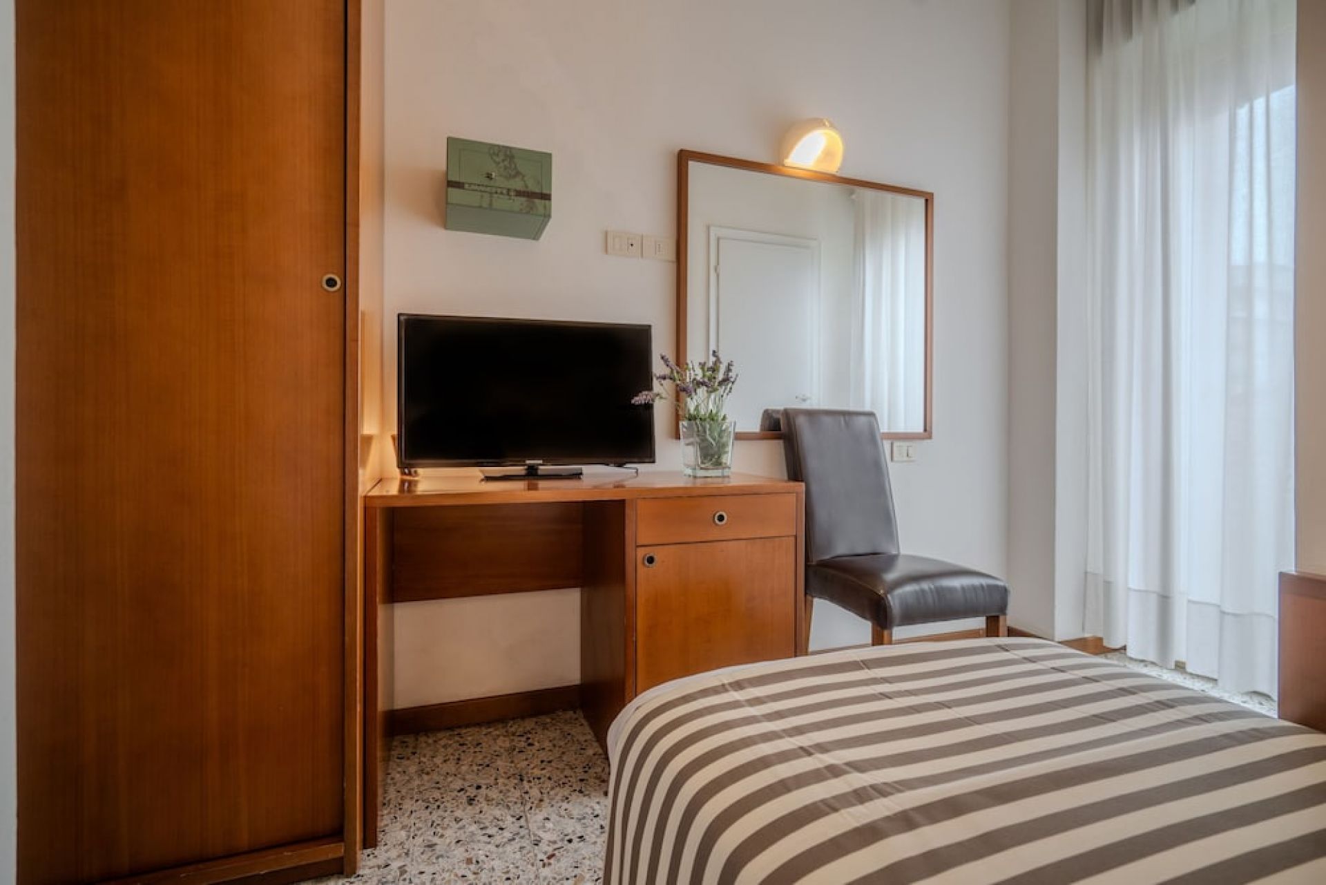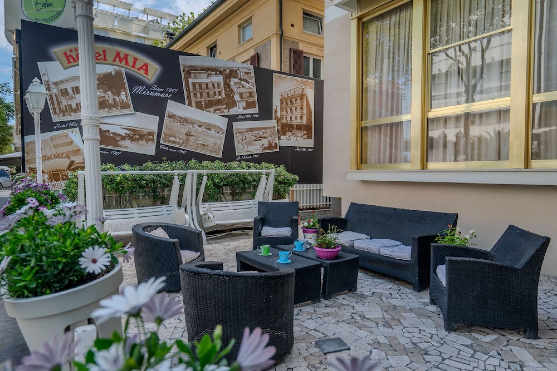 A Hotel Mia Rimini Miramare városrészében található, alig kb. 200 méterre a finomhomokos tengerparttól, így a vendégek könnyedén elérhetik a strandot és a part menti sétány pezsgő életét. A környék barátságos és jól kiépített, különösen népszerű a családok és pezsgő életteli környezetet kedvelők körében. A közelben számos étterem, kávézó, fagylaltozó és bár működik, valamint strandklubok és vízi sportlehetőségek is igénybe vehetők. A Miramare városrészben helyi üzletek, szupermarketek, gyógyszertárak és kisebb butikok is rendelkezésre állnak, így a mindennapi szükségletek könnyedén elintézhetők.