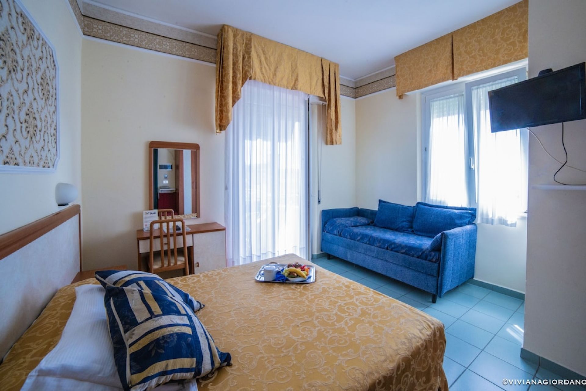 A 3 csillagos szálloda San Giuliano Mare negyedben található, kb. 120 méterre a legközelebbi homokos strandtól. A környéken számos étterem, bár és kávézó várja a vendégeket. A központ kb. 1.5 km-re található, busszal könnyen elérhető. Az Aquafan vízi park kb. 12 km-re helyezkedik el a szállodától.