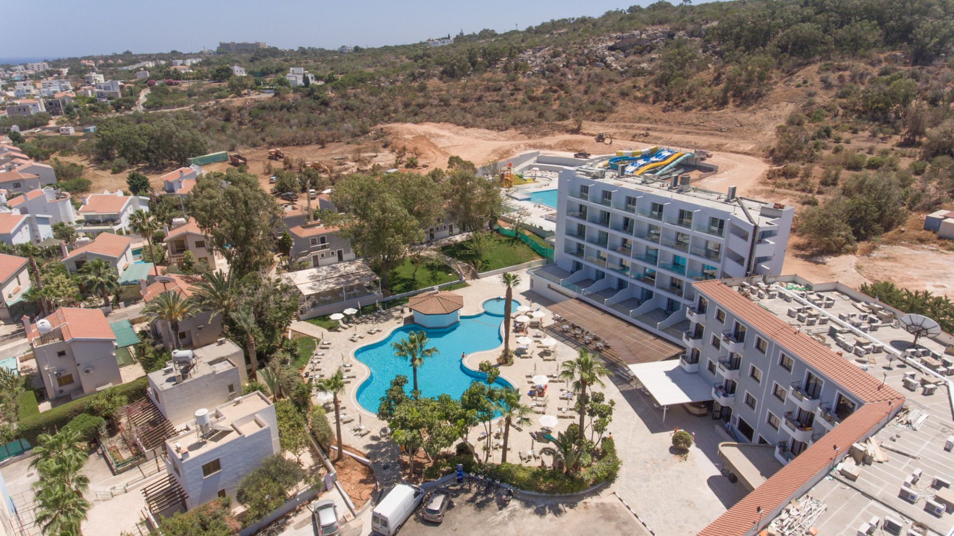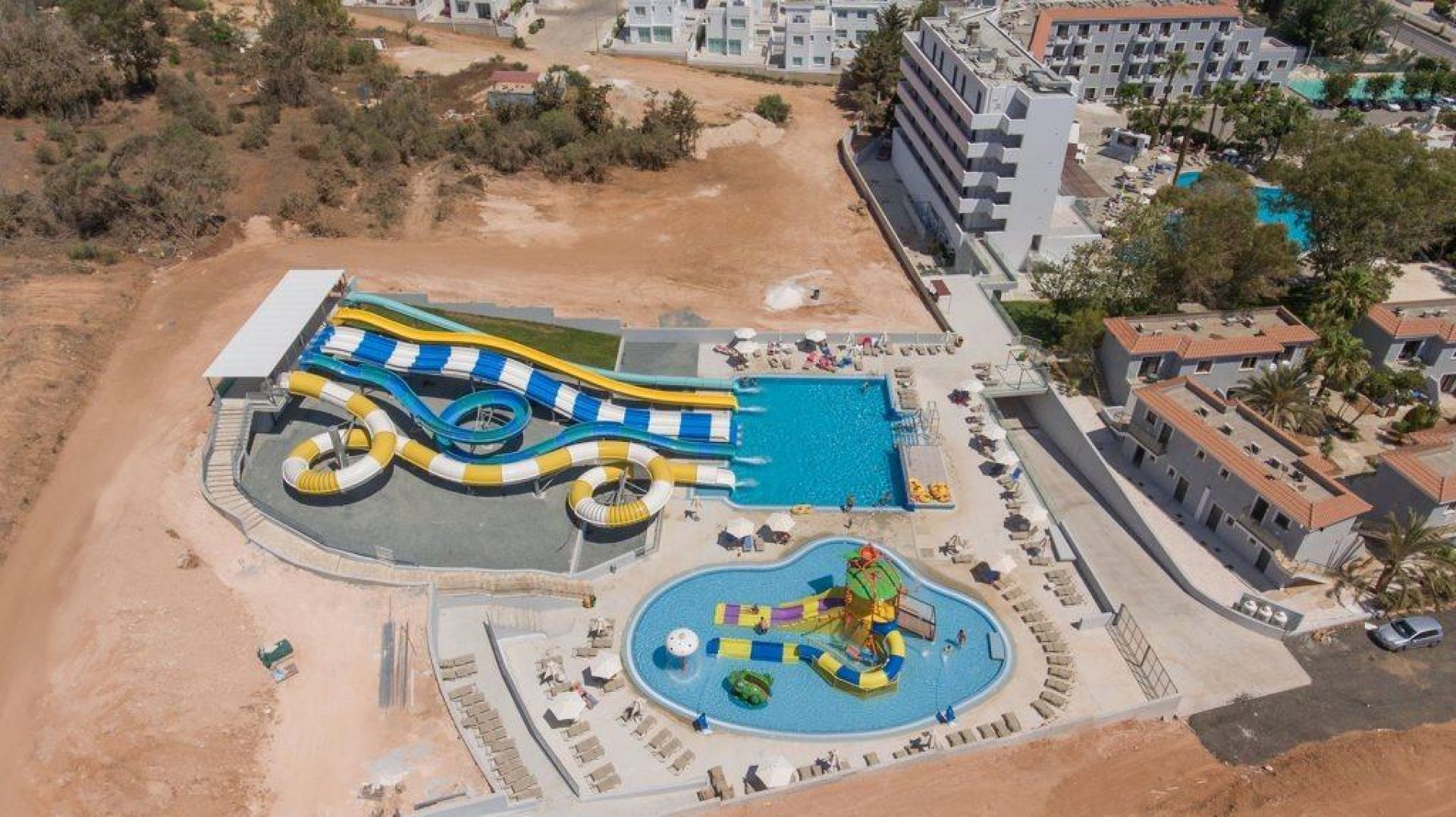 A Narcissos Waterpark Resort egy elegáns, négycsillagos szálloda Protaras városában, a csendes Green Bay környékén, a sziklás, homokos-aprókavicsos strand kb. 300 méterre található. A Cape Greco Nemzeti Park körülbelül 5 kilométerre fekszik a hoteltől. Protaras központja gyalog mintegy 25 perc alatt érhető el, míg a híres Szerelmesek hídja körülbelül 6 kilométerre található. A tenger szerelmeseinek ideális választás lehet a közeli Vizakia Beach, amely kb. 950 méterre helyezkedik el.