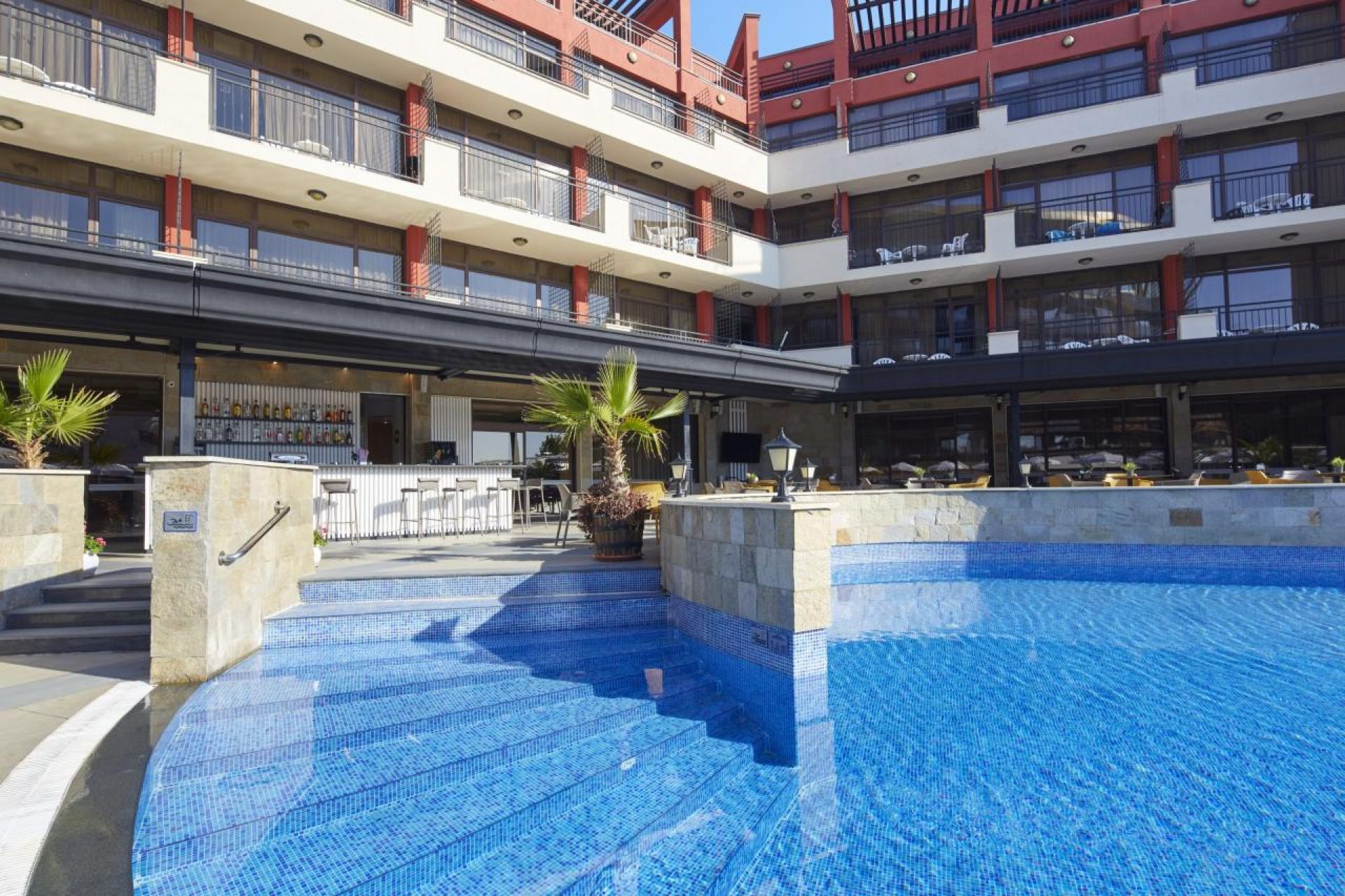 A szálloda Napospart déli részén helyezkedik el közvetlenül a homokos strand mellett, melytől csak egy homokdűne választja el. A szálloda közelében éttermek, kávézók és ajándékboltok találhatóak. Napospart központja, ahol számtalan szórakozási lehetőség áll rendelkezésre kb. 2 kilométerre érhető el. Nesszebar óvárosa kb. 2,8 kilométerre fekszik.