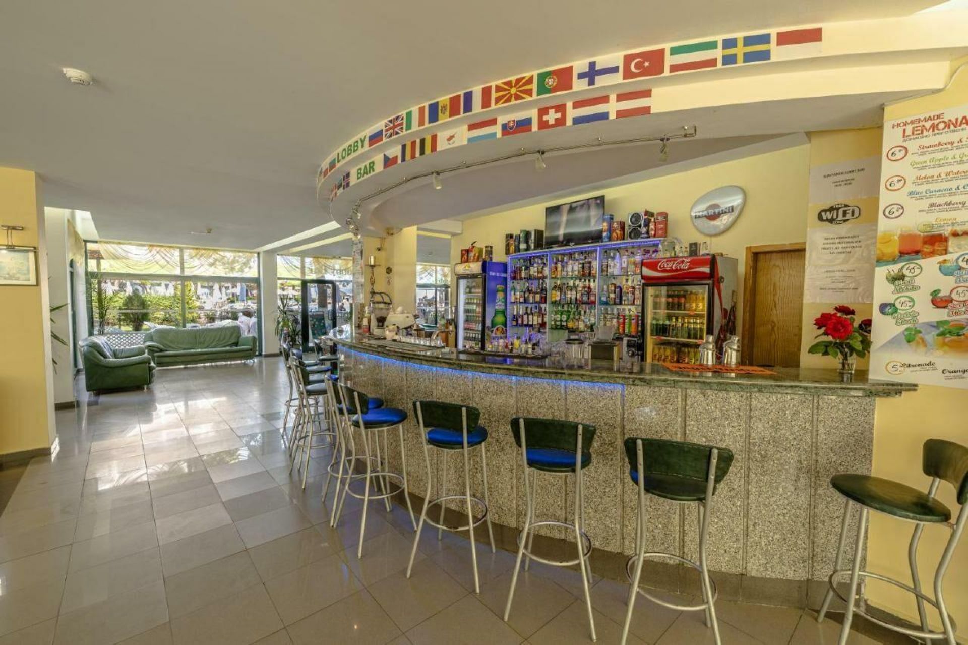 Szolgáltatások: 24 órás recepció, széf a recepción, poggyászmegőrző, ingyenes Wifi elérés a szobákban és a lobbyban, pénzváltó, társalgó, ajándékbolt, lift, étterem, lobby bár, pool bár, napozóágyakkal és napernyőkkel felszerelt napozóterasz, medence, gyermekmedence, játszótér, szépségszalon, parkoló